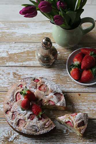 Strawberry deliciouness in a dessert cake which is enriched with yogurt and heart-healthy olive oil.