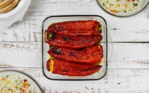 Feta-stuffed Florina peppers are a very popular side dish in my family! Every time we have a family gathering (pre-pandemic, anyway), we would each bring a meze dish to the feast…and this particular side would somehow always be present.