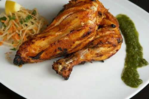 Tandoori Chicken is a kabab dish, where it is marinated first with lemon juice and salt in order to tenderize it for quick cooking and then marinated again with a blend of yogurt and spices to enhance the flavors.