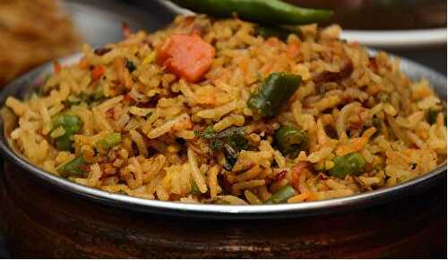 Tawa Pulao is a famous street food, most popular dish in the pav bhaji stalls on Juhu Beach.