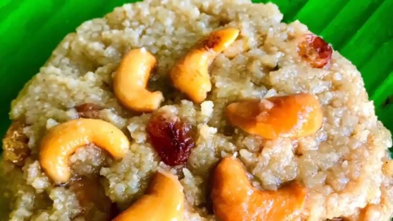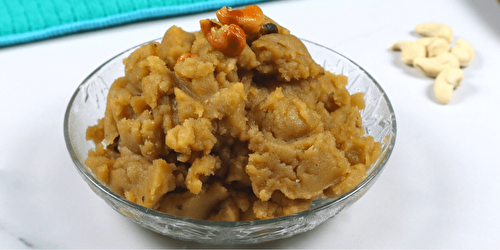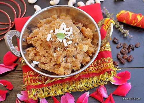 Wheat Halwa is a sweet dish made with wheat flour and jaggery.