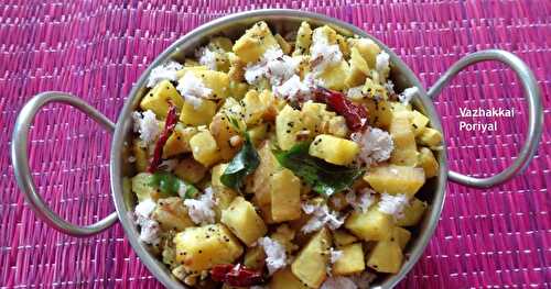 VAZHAKKAI DRY CURRY In my house, I make it a point to make dishes using raw/green bananas from time to time.