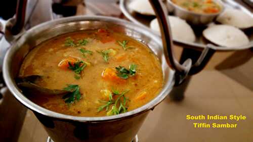 Tiffin Sambar is a typical South Indian homestyle sambar prepared with lentils and vegetables.