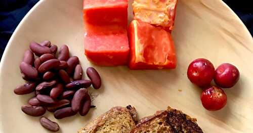 3-ingredient eggless french toast with bruschetta made from fresh tomatoes, basil and garlic.