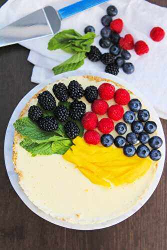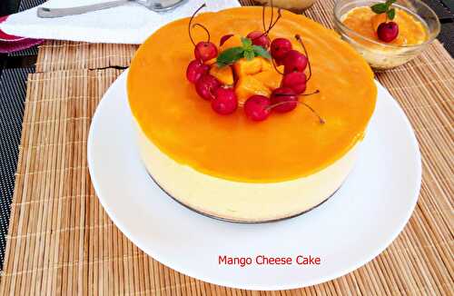 Cottage cheese and greek yogurt mixed with mango pulp to get smooth and silky cake filling on a crusty base.