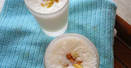 A healthy drink made with soaked finger millets and almonds served either hot or chilled.