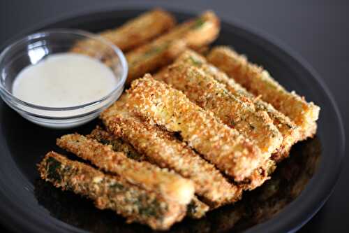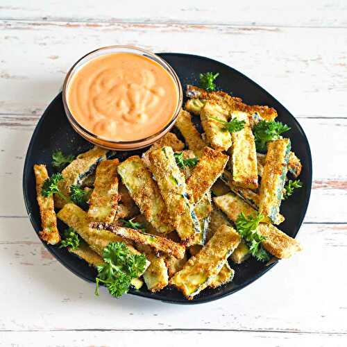 These air fryer zucchini fries with spicy ranch sauce are a delicious and easy snack.