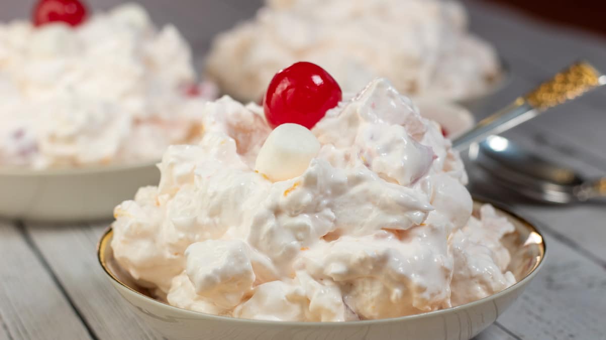 Ambrosia salad is an easy, creamy fruit dessert that features Cool Whip, pineapple, mandarins, cherries, mini marshmallows, and more! It's a delightfully refreshing dish to bring to your next potluck, family gathering, or party with your friends.