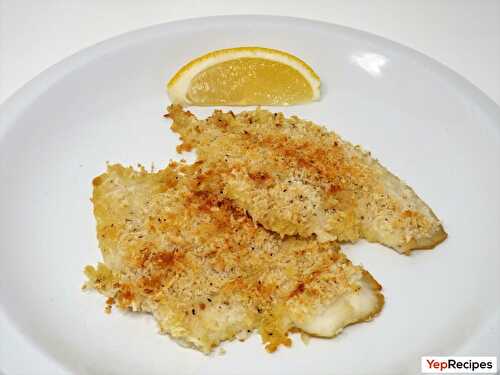 Flounder fillets topped with Parmesan cheese, garlic, and breadcrumbs then drizzled with butter and baked in the oven.