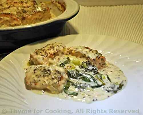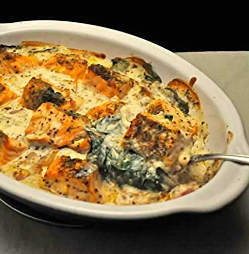 This simple Salmon Florentine is topped with a savory creamed spinach and is elegant enough to serve to guests, but simple enough to make as a weeknight meal!