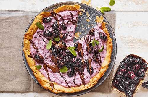 This flavorful blackberry tart recipe is made with tangy quark, along with earthy cinnamon and rich dark chocolate.