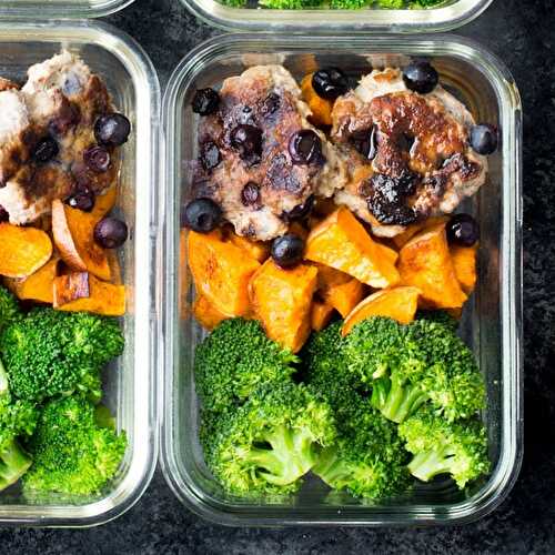 These blueberry turkey breakfast sausage bowls with cinnamon sweet potatoes and broccoli are a delicious breakfast meal prep option to power your mornings!