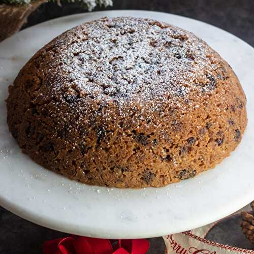 Traditional British Christmas Pudding is a make-ahead, steamed, fruit filled dessert which is set alight when served.
