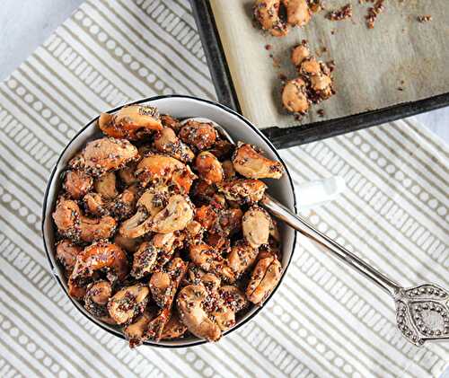 Maple candied cashews are roasted in maple syrup for a slightly naturally sweet candied cashew.