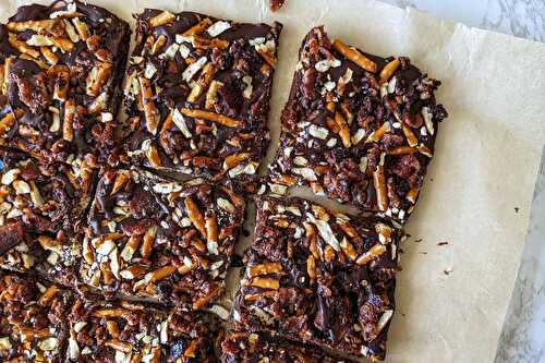 A sweet and salty chocolate bark recipe made for bacon lovers, featuring crushed pretzels and our Guinness Glaze.