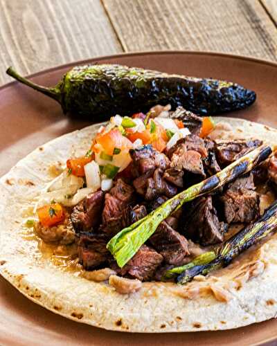 This is a great recipe for authentic Mexican taqueria style tacos carne asada (beef tacos).