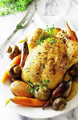 This oven poached chicken is cooked with ginger, lemon, and other aromatics to produce a juicy and flavor filled chicken breast.