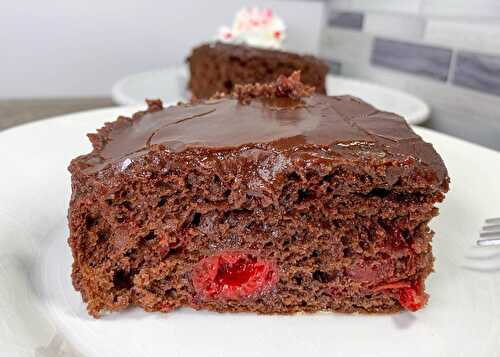 This delicious Chocolate Cake uses Cherry pie filling as one of its wet ingredients.