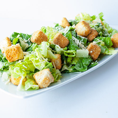 Pea shoot, mint, carrot salad with creamy lemon vinaigrette tossed with shaved Parmesan cheese.