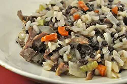Risotto with Duck Confit, White and Red Beans, hearty risotto main course