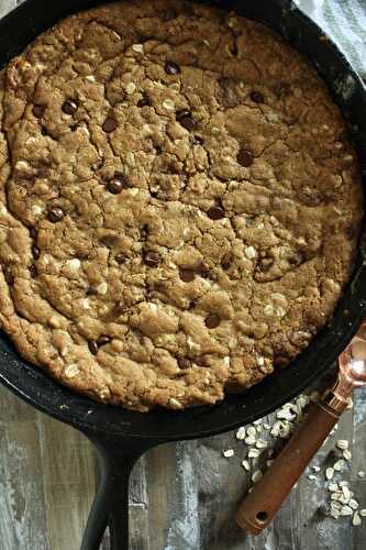 This Brown Butter Oatmeal Chocolate Chip Cookie Skillet is a delicious and incredibly easy way to enjoy a twist on a traditional chocolate chip cookie! Perfect for a crowd, or when you just want a really, really big cookie all to yourself.