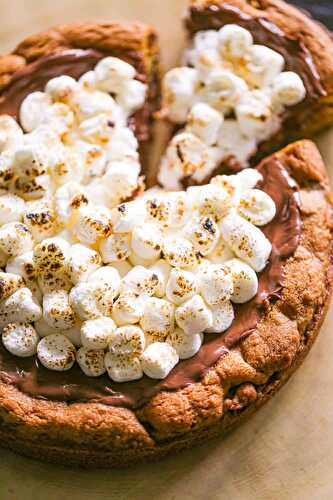 This gooey, delicious S'mores Cookie Cake doesn't use a campfire! But it's quick to make and delicious—perfect any time.