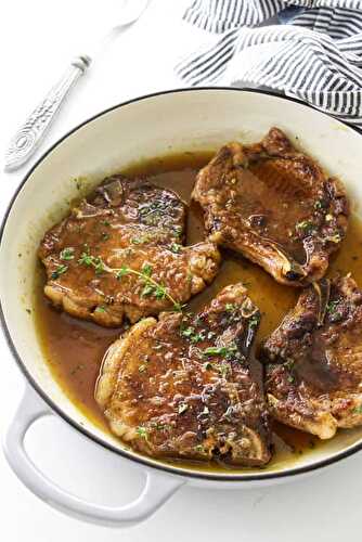 These moist and juicy ultra-thin Honey Garlic Glazed Pork Chops are quickly seared, and the honey garlic glaze is made right in the same pan.