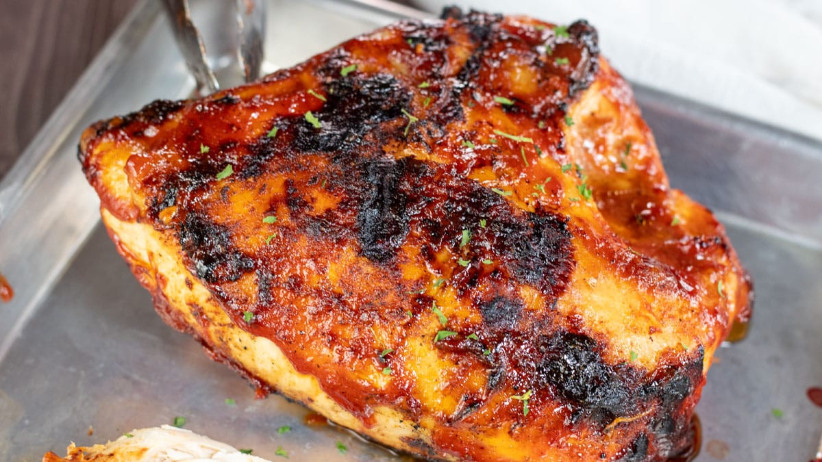 This simple baked BBQ chicken breast recipe will bring that sweet, salty, smoky flavor of barbecue home at any time of the year! It's a great winter-time version of grilled chicken that everyone will enjoy having as part of a fantastic, flavorful meal!