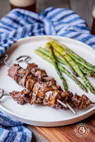 Grilled Beer Brined Filet Tips with Hoisin Glaze, just 4 ingredients and SO good.