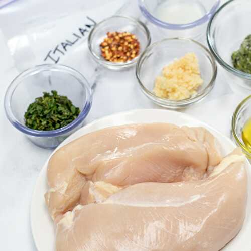 This easy, zesty Italian Chicken Marinade is 100% homemade with olive oil, lemon juice, garlic, Italian seasoning, basil, and red pepper flakes! Just 6 ingredients for this simple chicken marinade that is sure to be a new family favorite!