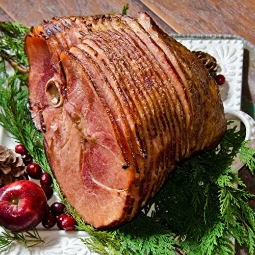 My easy-to-make glazed honey ham is the perfect Christmas or Easter main course centerpiece to a fabulous family meal that everyone will love! This delicious ham is glazed with rich butter, sweet brown sugar, sticky honey, and studded with cloves to.