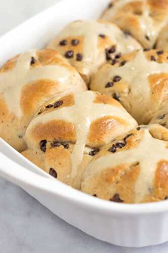 These sweet, yeasty hot cross buns, made with chocolate chips instead of raisins, are soft and fluffy rolls traditionally eaten on Good Friday!