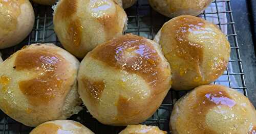 Traditionally eaten on Easter or on Good Friday, these soft and light, slightly sweet rolls and filled with raisins and spices.