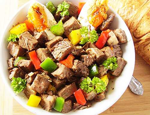 Beef (Bouillon Leftovers) and Bell Peppers Salad with Italian Seasoning : perfect way to use beef once broth (bouillon) is made.