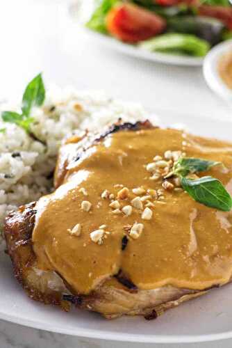 This marinated grilled chicken breast with spicy peanut sauce is fast and easy.
