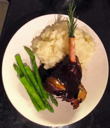 When you juicy slow cook shanks of lamb, expect the meat falling off the bone and the red wine sauce to be rich and tasty.
