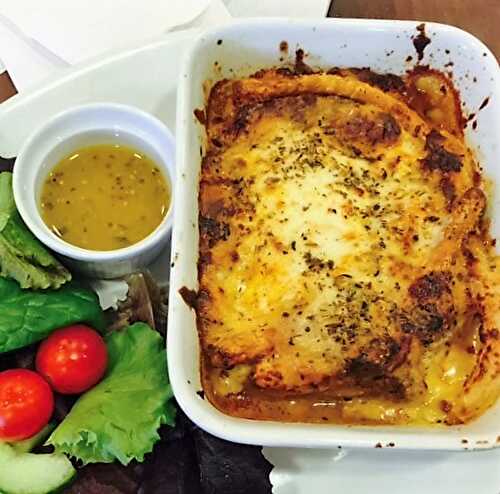 Lamb Moussaka Recipe - This Greek recipe combines lamb mince with layers of fried aubergine, topped with cheese and creme fraiche.