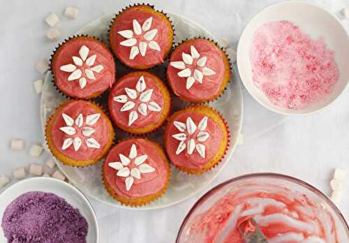 Cute marshmallow flower cupcakes are perfect for afternoon tea topped with a sweet raspberry jam buttercream