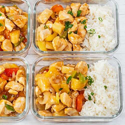 This meal prep sweet & sour chicken recipe features juicy stir-fried chicken, tender vegetables, and homemade sweet & sour sauce! It makes for an easy high-protein lunch or dinner that is loaded with flavor.