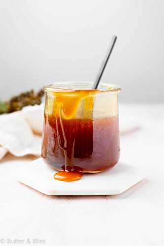 Easy Homemade Maple Syrup Caramel Sauce made with only 2 ingredients! This refined sugar-free caramel sauce is made with pure maple syrup and coconut milk.