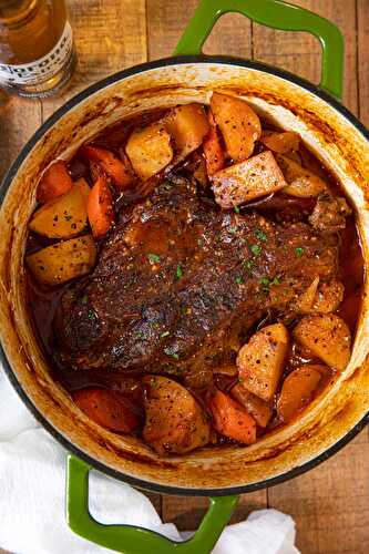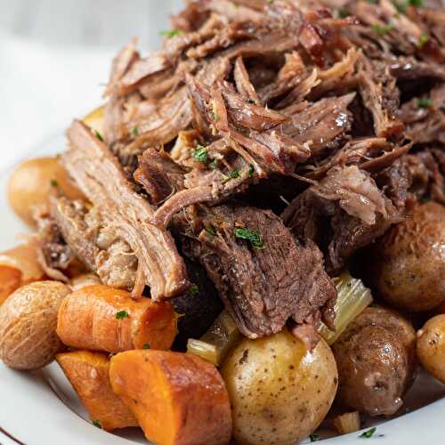 This beef chuck roast is an easy-to-make, one-pot meal that is perfect for any special occasion or simple family dinner! The meat is seared until golden and then roasted in the oven until it is melt-in-your-mouth tender! Complete with carrots and potatoes,.