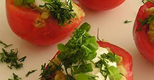 Mexican Plum-Tomato Cups Makes 20 appetizers Tomato Cups 10 medium plum (Roma) tomatoes 1 ripe large avocado, pitted, peeled and fine.