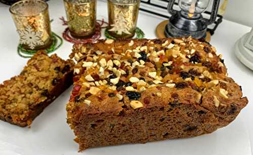 Christmas special plum cake made without alcohol with loads of dry fruits and nuts, ideal for serving as dessert or for any family picnic