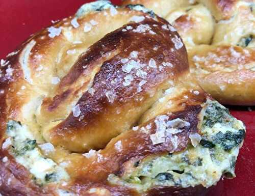 Beer Soft Pretzels Stuffed with Spinach Artichoke Dip