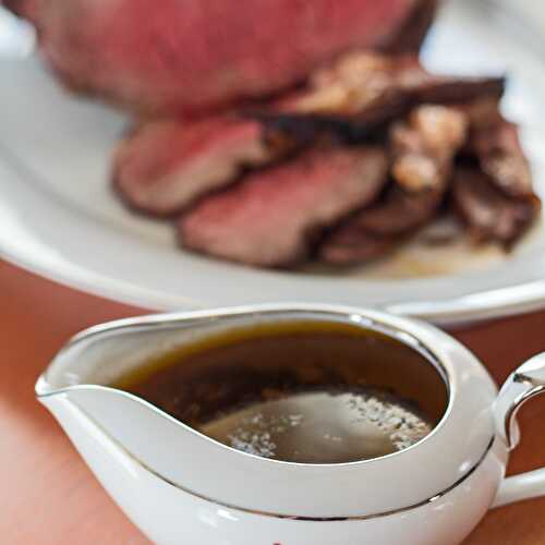 Hearty, rich, and packed with beefy flavor doesn't even come close to describing this wonderful Prime Rib Red Wine Au Jus! This easy-to-make beef sauce elevates your prime rib roast so beautifully that it should be served with every roast beef dinner!