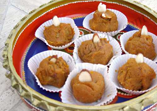 ‘Halwa’ or ‘Burfi’, using the seasonal convenience of fresh or store-bought pumpkin puree with warm Indian spice flavors like cardamom, cinnamon, nutmeg and the crunch of sliced almonds.