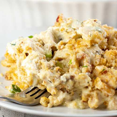 This Ritz chicken casserole is an incredibly easy dish loaded with cooked chicken, a creamy mixture, and buttery Ritz cracker topping! It's quick to make for busy weeknights or any family dinner.