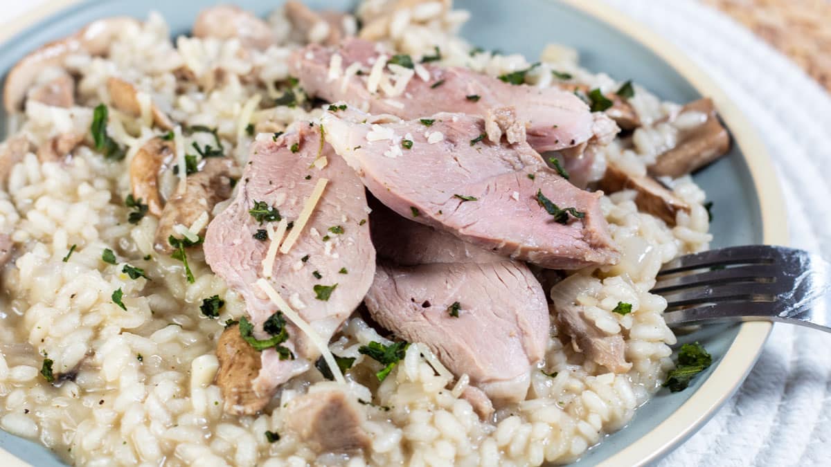 Recipe Risotto with smoke duck, mushrooms and ham instant pot - Do you have some smoke duck breast? Why not try that simple recipe of risotto with duck, ham, and mushrooms? It will be a good dish appreciated by your friends or family.