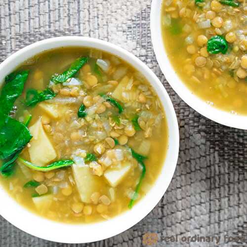 A tasty dump-and-go vegan lentil soup that’s high in fiber and protein.