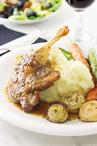 Duck legs are roasted with potatoes and thyme to make this flavor-packed roast duck leg with potatoes dish.